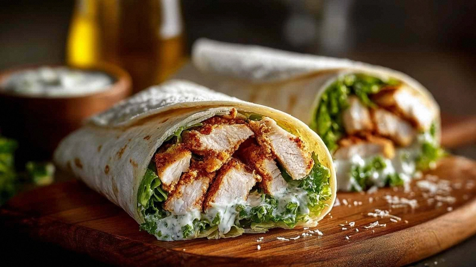 - Assemble the wrap. Lay a warm tortilla flat on a clean surface. Spread a generous handful of chopped romaine across the center, then add the coated chicken. Sprinkle shredded Parmesan and croutons over the top. Fold the sides in and roll tightly from the bottom up, securing the filling. Slice the wrap in half diagonally and serve immediately for the best texture.