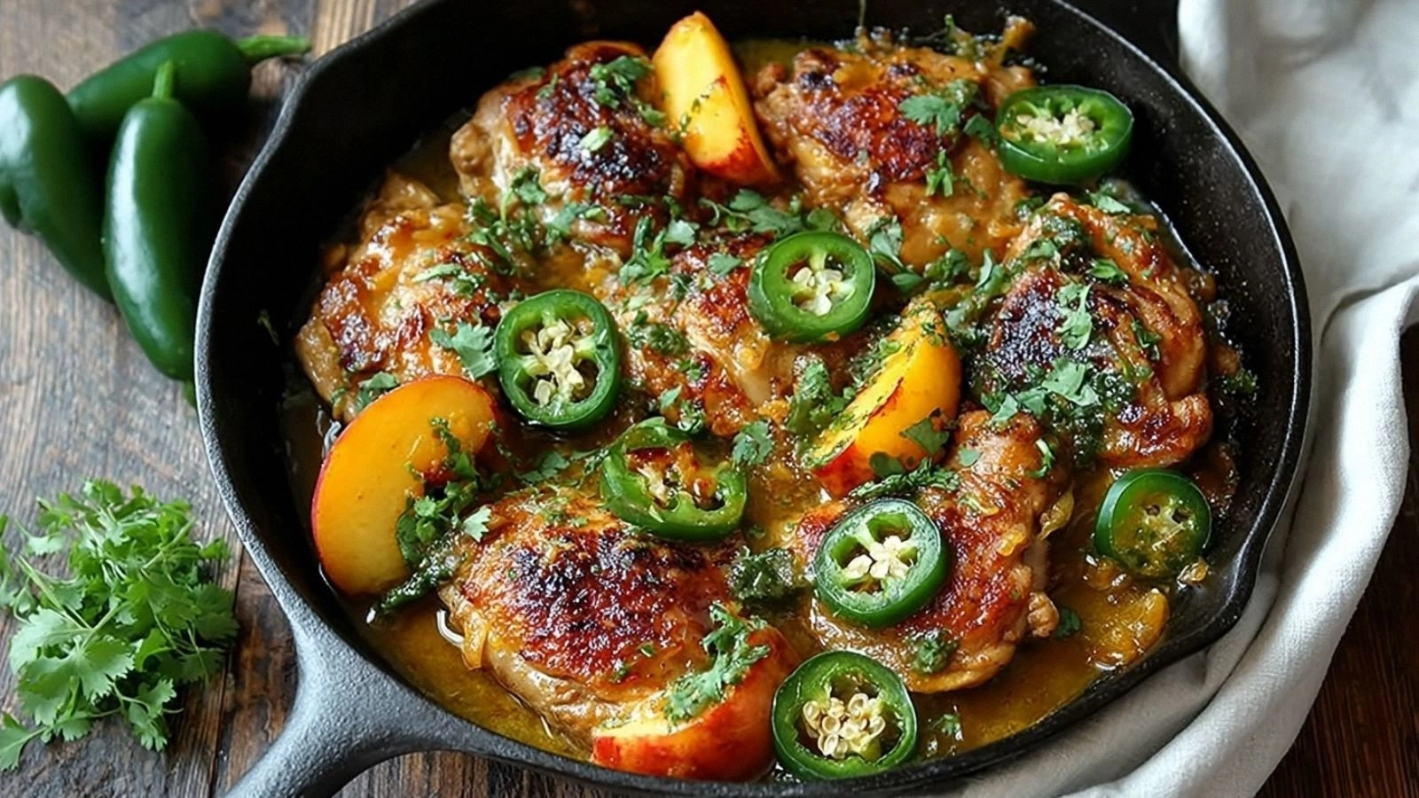 Picture this: a pan sizzling with olive oil, the golden sheen of chicken searing, the sharp scent of jalapeño slicing into the air, and the sweet perfume of peaches caramelizing. The sound of the sizzle is a drumbeat of anticipation, the sight of the sauce thickening into a glossy glaze feels like velvet draped over the meat, and the first bite is a burst of heat followed by a mellow sweetness that lingers on the palate. I could almost taste the way the honey coats the peaches, how the acidity of apple cider vinegar cuts through the richness, and how the cornstarch thickens the sauce into a silky coating that clings to every inch of the chicken. Every sense is in sync, creating a symphony of flavors that makes even the most skeptical diner reach for seconds.