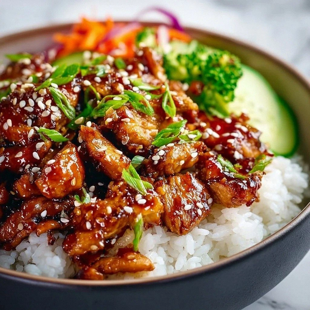 - Serve immediately while the bowl is hot and the sauce is glossy. The rice should still be warm, and the chicken should be tender.